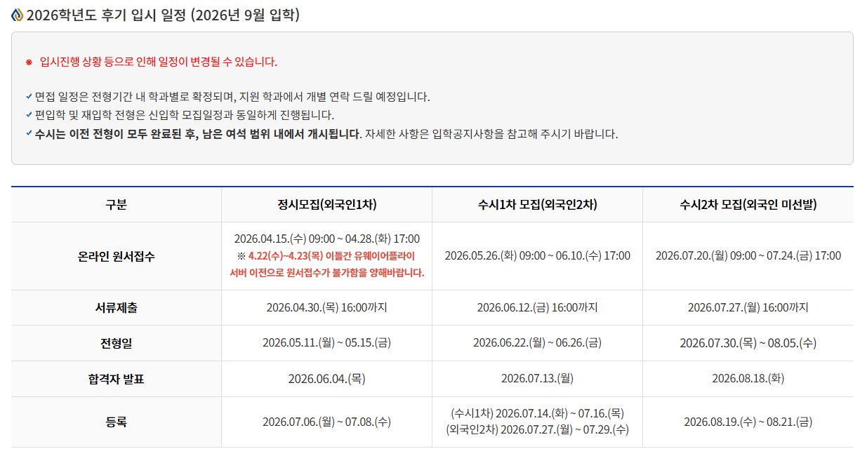 ※ 2학기 모집은 7.1.(수) 부터 수강정정기간까지